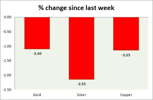The metal pack is down today. Performance this week at a glance in chart & table -