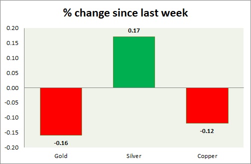 The metal pack is mixed today. Performance this week at a glance in chart & table -