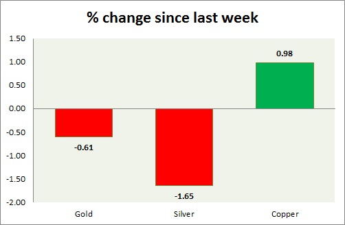 The metal pack is mixed today. Performance this week at a glance in chart & table -