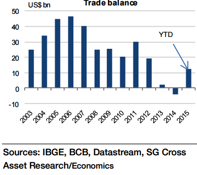 "The current account could be heading for a substantial correction this year in dollar terms. However, given the possibility that BRL depreciation this year could be over 30%, we will likely see a moderate improvement in the current account balance to GDP ratio", added Societe Generale.