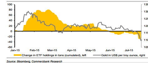 The gold ETFs tracked by Bloomberg recorded outflows of 4.4 tons yesterday, meaning that holdings have been reduced by a good 28 tons since the start of the month.