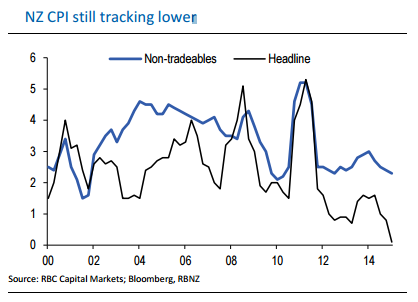 Over the longer horizon we view the profile for NZD/USD as gently weaker, and we think AUD/NZD should trend higher into 2016. Beyond the additional cut we expect this year, we think more evidence of a softer terms-of-trade should maintain a weaker activity and employment outlook, and should keep the RBNZ with a neutral/soft dovish bias.