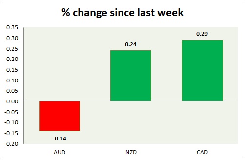 Strength meter (since last week) - Aussie -0.08%, Kiwi +0.24%, Loonie +0.29%.