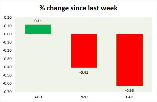 Strength meter (since last week) - Aussie +1.51%, Kiwi +1.15%, Loonie +0.33%