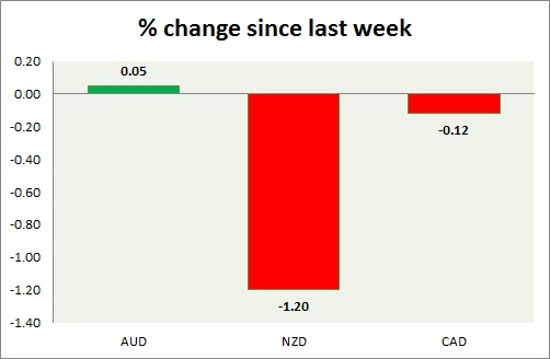 Strength meter (since last week) – Aussie +0.05%, Kiwi -1.20%, Loonie -0.12%
