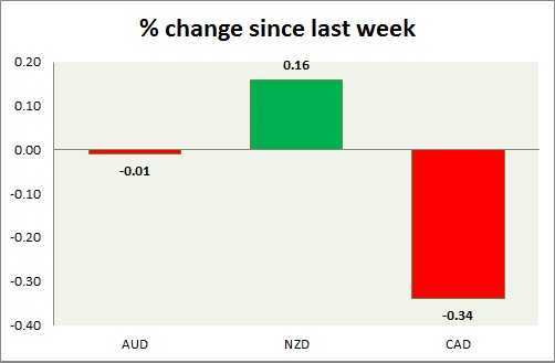Strength meter (since last week) – Aussie +0.88%, Kiwi +0.64%, Loonie -0.05%