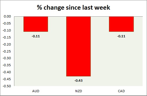 Strength meter (since last week) – Aussie -0.11%, Kiwi -0.43%, Loonie -0.11%
