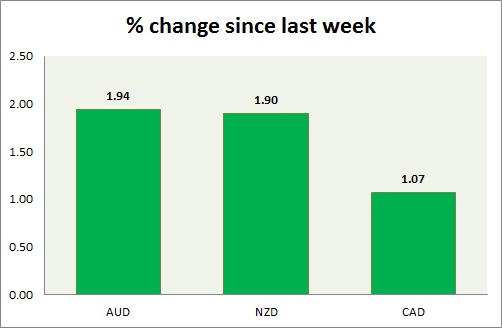 Strength meter (since last week) – Aussie +1.94%, Kiwi +1.90%, Loonie +1.07%