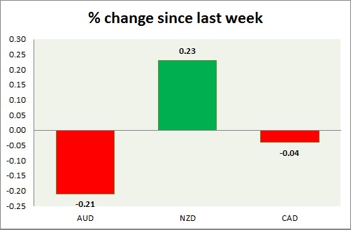 Strength meter (since last week) – Aussie -0.21%, Kiwi +0.23%, Loonie -0.04%