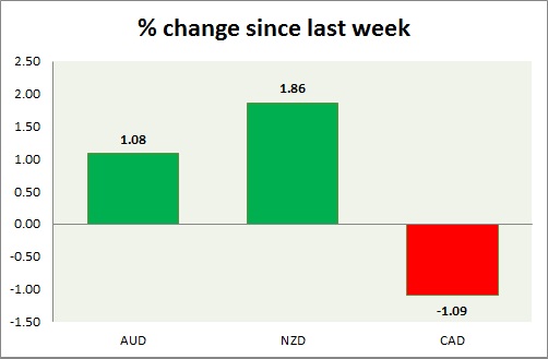 Strength meter (since last week) – Aussie +1.08%, Kiwi +1.86%, Loonie -1.09%