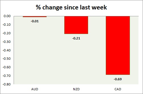 Strength meter (since last week) – Aussie -0.01%, Kiwi -0.21%, Loonie -0.69%