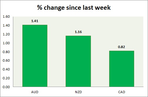 Strength meter (since last week) – Aussie +1.41%, Kiwi +1.16%, Loonie +0.82%