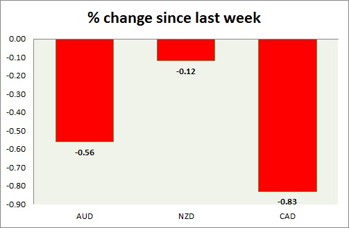 Strength meter (since last week) – Aussie -0.56%, Kiwi -0.12%, Loonie -0.83%