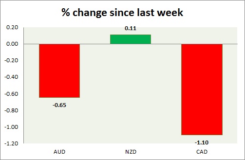 Strength meter (since last week) – Aussie -0.65%, Kiwi +0.11%, Loonie -1.10%
