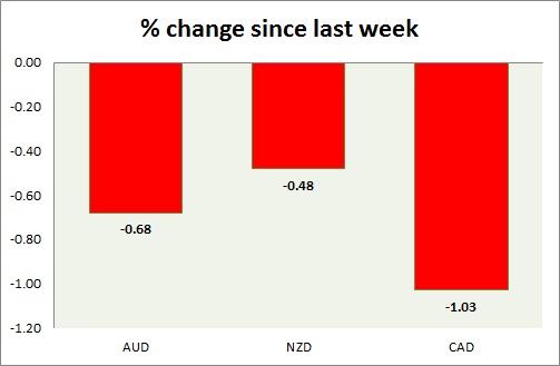 Strength meter (since last week) – Aussie -0.68%, Kiwi -0.48%, Loonie -1.03%