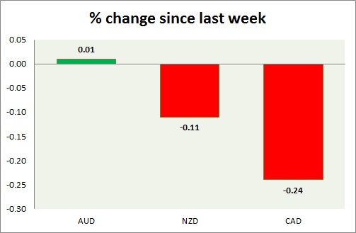 Strength meter (since last week) – Aussie +0.01%, Kiwi -0.11%, Loonie -0.24%
