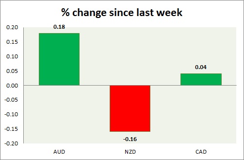 Strength meter (since last week) – Aussie +0.18%, Kiwi -0.16%, Loonie +0.04%