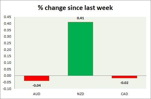 Strength meter (since last week) – Aussie -0.03%, Kiwi +0.41%, Loonie -0.02%