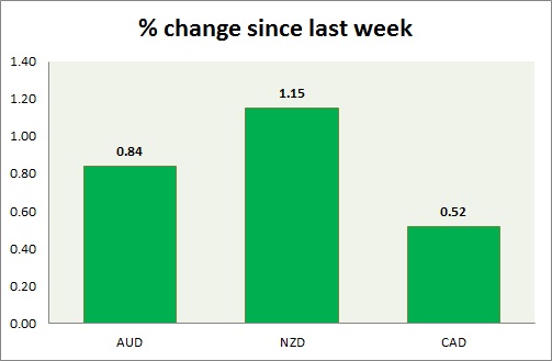 Strength meter (since last week) – Aussie +0.84%, Kiwi +1.15%, Loonie +0.52%