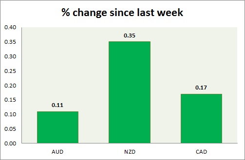 Strength meter (since last week) – Aussie +0.11%, Kiwi +0.35%, Loonie +0.17%