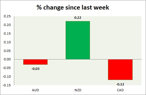 Strength meter (since last week) – Aussie -0.03%, Kiwi +0.22%, Loonie -0.12%