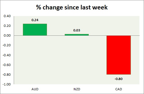 Strength meter (since last week) – Aussie +0.24%, Kiwi +0.03%, Loonie -0.80%