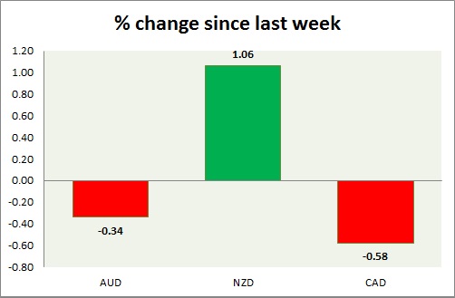 Strength meter (since last week) – Aussie -0.34%, Kiwi +1.06%, Loonie -0.58%