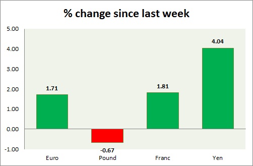 Strength meter (since last week) - Euro +1.71%, Franc +1.81%, Yen +4.04%, GBP -0.67%
