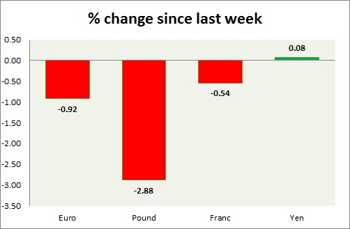 Strength meter (since last week) - Euro -0.92%, Franc -0.54%, Yen -0.31%, GBP -2.88%