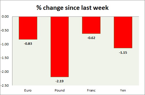 Strength meter (since last week) – Euro -0.83%, Franc -0.62%, Yen -1.15%, GBP -2.19%