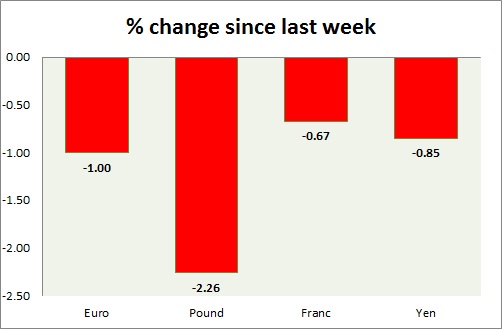 Strength meter (since last week) – Euro -1%, Franc -0.67%, Yen -0.85%, GBP -2.26%