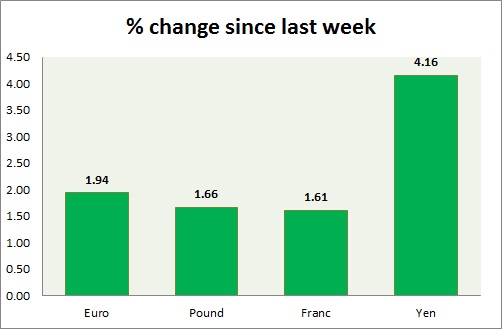 Strength meter (since last week) – Euro +1.94%, Franc +1.61%, Yen +4.16%, GBP +1.66%
