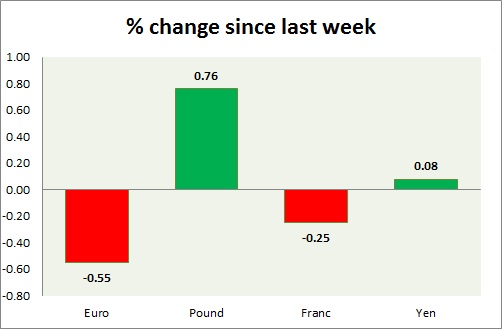 Strength meter (since last week) – Euro -0.55%, Franc -0.25%, Yen +0.08%, GBP +0.76%