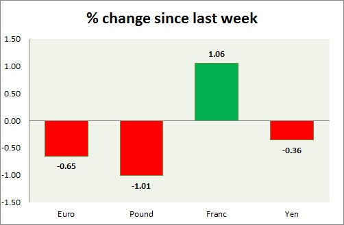 Strength meter (since last week) – Euro -0.65%, Franc +1.06%, Yen -0.36%, GBP -1.01%