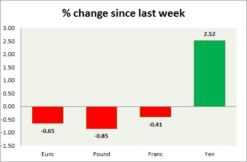 Strength meter (since last week) – Euro +0.41%, Franc -0.27%, Yen +0.54%, GBP +0.11%