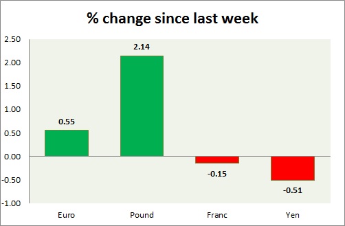 Strength meter (since last week) – Euro +0.55%, Franc -0.15%, Yen -0.51%, GBP +2.14%