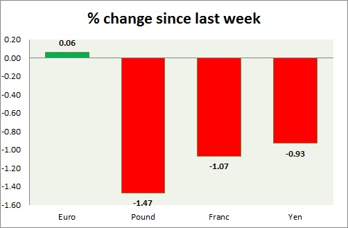 Strength meter (since last week) – Euro +0.06%, Franc -1.07%, Yen -0.93%, GBP -1.47%