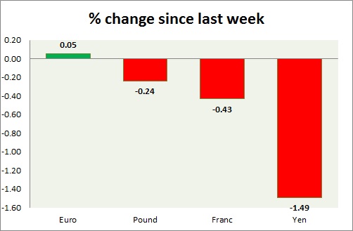 Strength meter (since last week) – Euro +0.05%, Franc -0.43%, Yen -1.49%, GBP -0.24%