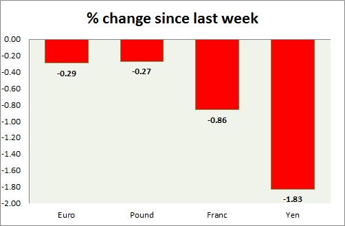 Strength meter (since last week) – Euro -0.29%, Franc -0.86%, Yen -1.83%, GBP -0.27%