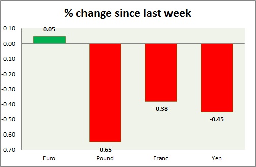 Strength meter (since last week) – Euro +0.05%, Franc -0.38%, Yen -0.45%, GBP -0.65%