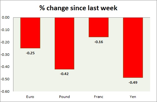 Strength meter (since last week) – Euro -0.25%, Franc -0.16%, Yen -0.49%, GBP -0.42%