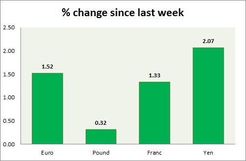 Strength meter (since last week) – Euro +1.52%, Franc +1.33%, Yen +2.07%, GBP +0.32%
