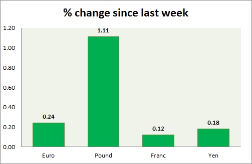Strength meter (since last week) – Euro +0.24%, Franc +0.12%, Yen +0.18%, GBP +1.11%