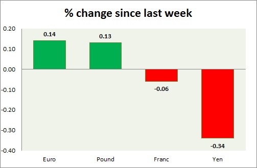 Strength meter (since last week) – Euro +0.14%, Franc -0.06%, Yen -0.34%, GBP +0.13%