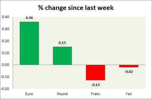 Strength meter (since last week) – Euro +0.36%, Franc -0.13%, Yen -0.02%, GBP +0.15%