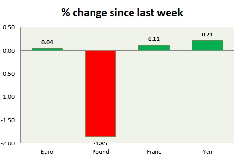 Strength meter (since last week) – Euro +0.04%, Franc +0.11%, Yen +0.21%, GBP -1.85%