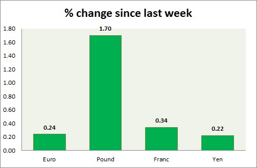 Strength meter (since last week) – Euro +0.24%, Franc +0.34%, Yen +0.22%, GBP +1.70%
