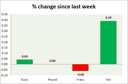 Strength meter (since last week) – Euro +0.04%, Franc -0.06%, Yen +0.39%, GBP -0.00%
