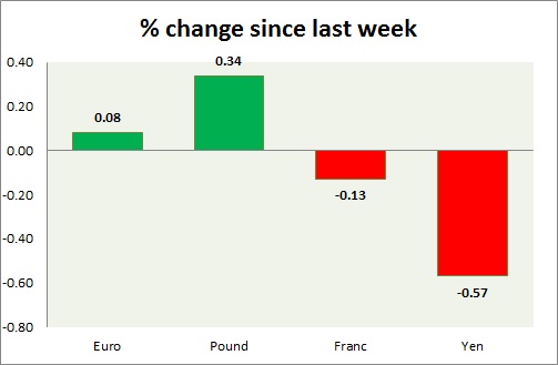 Strength meter (since last week) – Euro +0.08%, Franc -0.13%, Yen -0.57%, GBP +0.34%