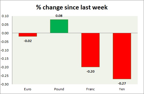 Strength meter (since last week) – Euro -0.02%, Franc -0.20%, Yen -0.27%, GBP +0.08%